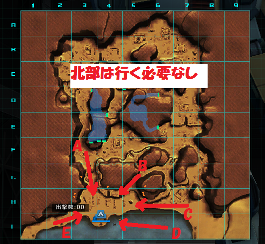 それ以外のコンテナ、基地破壊は不要ですが、座標H6にあるコンテナは中盤あたりで時間ロスなく回収できます。