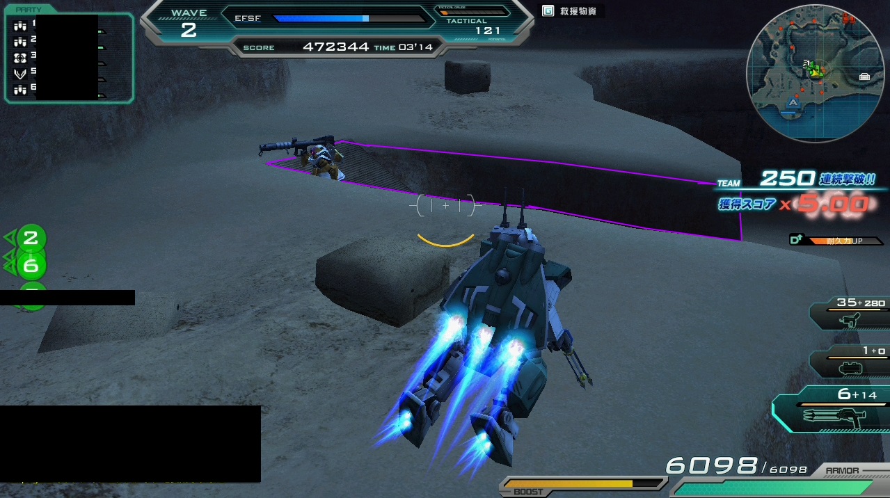 NPCが2機、友軍として参加します。NPCは撃破されても連キルはクリアされませんし、NPCが撃破した敵は連キルに加算されません。